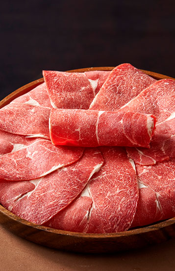 雪花均匀漂亮,肉质纯净,涮煮后鲜嫩有弹性,口感醇厚浓郁,柔嫩多汁